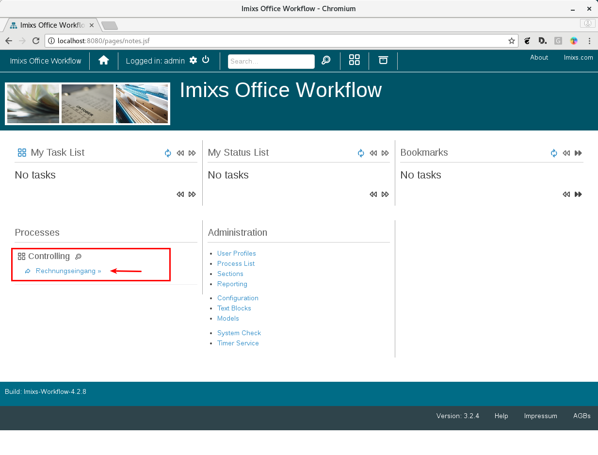 The new process now appears on the home screen. Click on it to start the corresponding workflow.