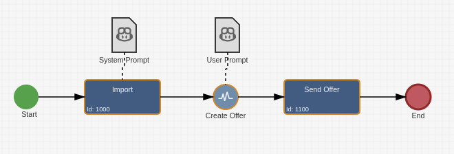 For simple use cases, a single prompt definition on a BPMN Event works well. But in more complex business processes, the same AI assistant needs to: